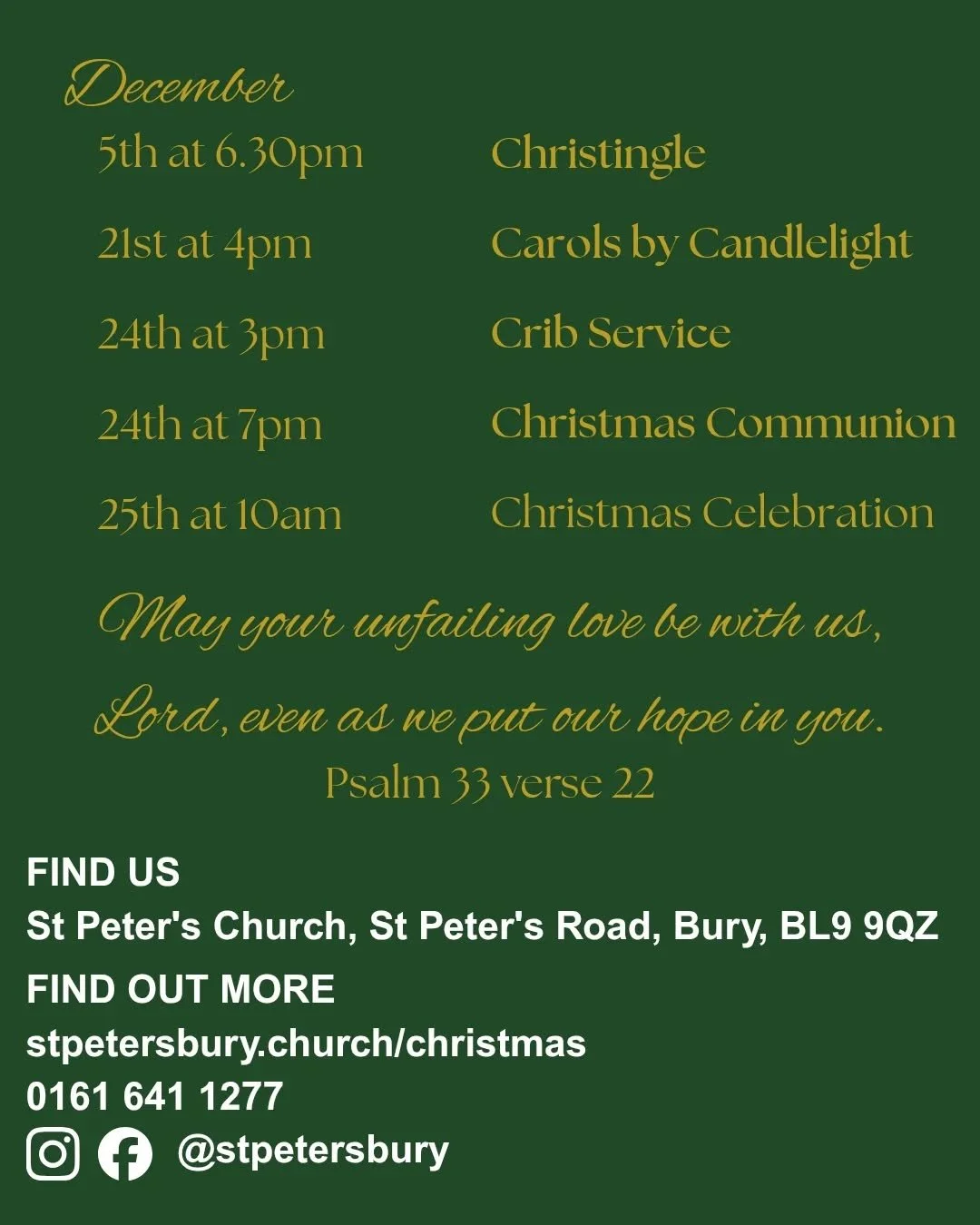 You are invited to come and celebrate Christmas with us at St Peter’s - we’d be delighted to see you at any or all of our services and events!